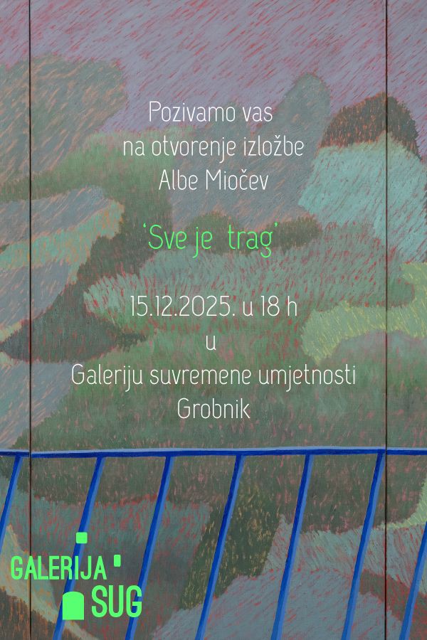 Grobnička Katedra Čakavskog sabora i Galerija suvremene umjetnosti Grobnik s ponosom najavljuje otvorenje izložbe Sve je trag mlade i iznimno zapažene hrvatske umjetnice Albe Miočev, umjetnice koja predstavlja jedan od snažnijih novih slikarskih glasova generacije. Otvorenje izložbe održat će se u ponedjeljak, 15. prosinca 2025. u 19 sati u Galeriji suvremene umjetnosti Grobnik koja djeluje u prostoru Kaštela Grobnik.